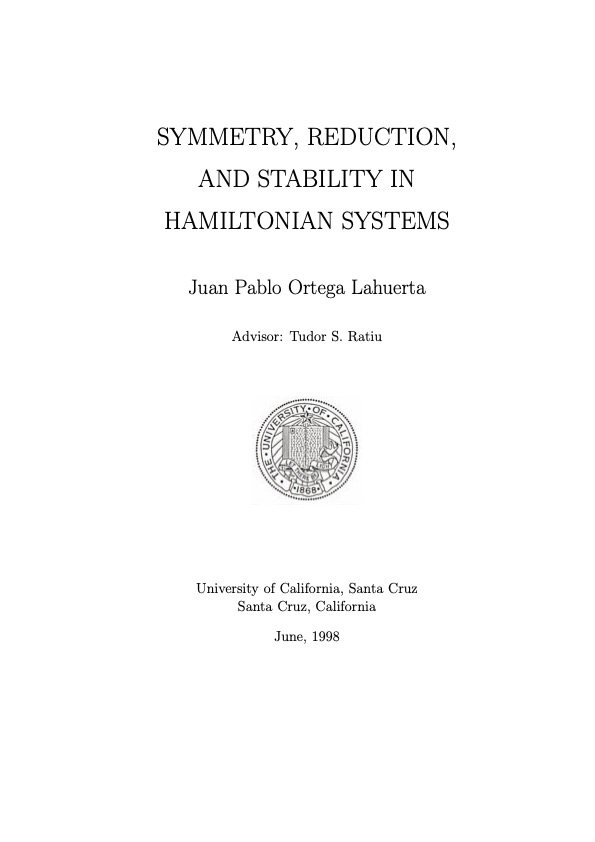 - Symmetry, Reduction, and Stability in Hamiltonian Systems. Ph.D. Thesis. University of California, Santa Cruz. June, 1998. Download
